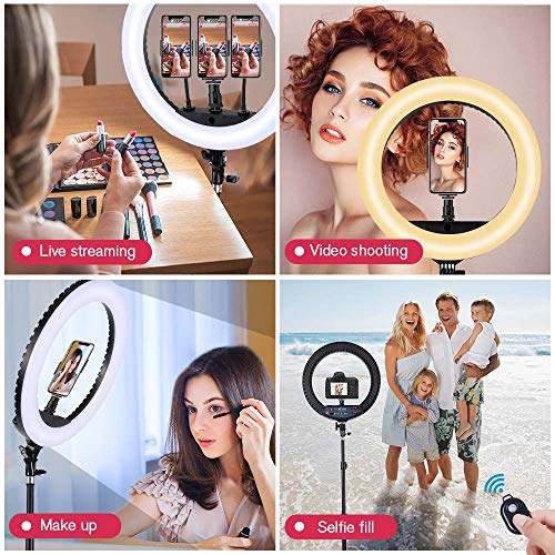 - 【18 inch Large Ring Light】Special LED SMD design give off great light (ranging from 2900K to 6500K color temperature without change the color filter, 10%-100% brightness adjustable), bright enough, perfect for portraits, vlog, livestream and selfie.