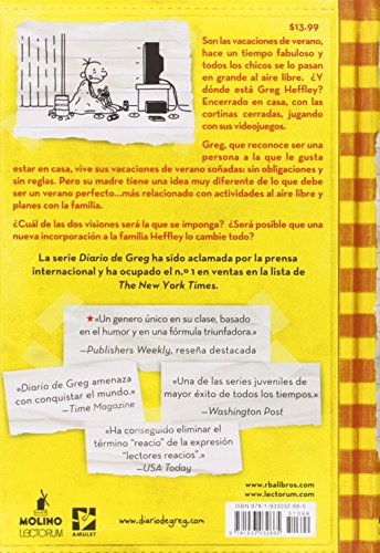 Details: Product Description It's summer vacation and all the kids are having fund outside. So where's Greg Heffley? At home playing video games with the shades drawn. Greg, a self-confessed "indoor person", is living out his ultimate summer fantasy: no responsibilities and no rules. But Greg's mom has different plans... a summer packed with outdoor activities and "family togetherness" About the Author Jeff Kinney is a #1 New York Times bestselling author and four-time Nickelodeon Kids Choice Award winner for Favorite Book. Jeff has been named one of Time magazine s 100 Most Influential People in the World. He is also the creator of Poptropica, which was named one of Time magazine s 50 Best Websites. He spent his childhood in the Washington, D.C., area and moved to New England in 1995. Jeff lives with his wife and two sons in southern Massachusetts, where he is opening a bookstore.