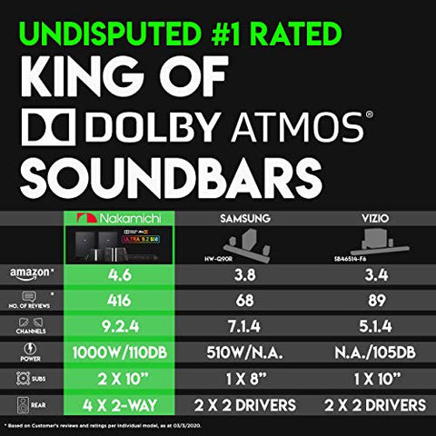 - With 70+ years of audio excellence, experience the absolute best audio no other soundbar can replicate. Feel the roomshaking bass with industry’s only Dual Wireless Subwoofers & 360° 9.2 channel audio from every direction with our soundbar + four modular surround effects speakers. This plug and play solution’s designed to bring the acoustics of a high performance cinema into your living room in approx 30 minutes. Winner of the best Dolby Atmos soundbar battle (hosted by Brian Tong, Ex-Cnet host)