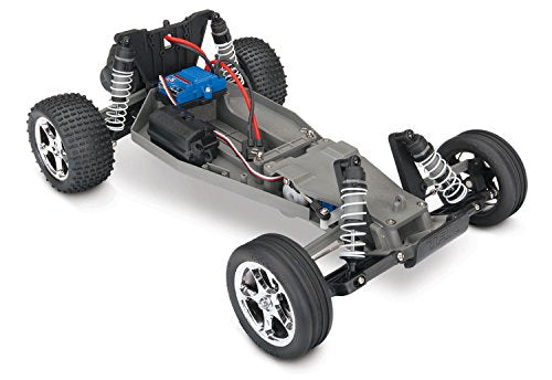 Details: The Traxxas Bandit redefines traditional Buggy performance by creating a whole new class of extreme sports Buggy. Bandit offers the highest levels of speed, action, and fun that will easily make it one of your favorites for all kinds of RC driving excitement. The lightweight Bandit chassis is loaded with an aggressive Titan 12-turn modified motor and a High-Current XL-5 electronic speed control that deliver lightning-fast acceleration and incredible 35+mph performance. Pull the trigger and Bandit rips massive rooster tails, soars over giant jumps, and lays down the power for pure performance and excitement at every turn. Bandit is infused with the latest Tech including the patent-pending Torque-Control slipper clutch and Alias high-performance 2.2" racing tires. The advanced dual-pin rear, and ribbed front tread designs are engineered to work with our exclusive rubber compounds for superior off-road traction and directional control. The industry standard 2.2" mirror-chrome Tracer wheels open the door to a wide range of tire options, including the optional Traxxas anaconda 2.2" street treads. Battery and charger sold separately.