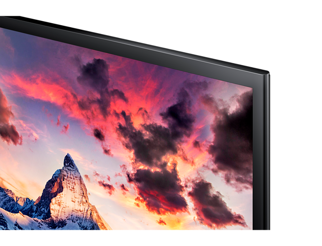 • Panel ultra fino: Con un increíble diseño fino de 10 mm —tan esbelto como un bolígrafo—, el panel de una pieza es el doble de fino que los monitores Samsung normales